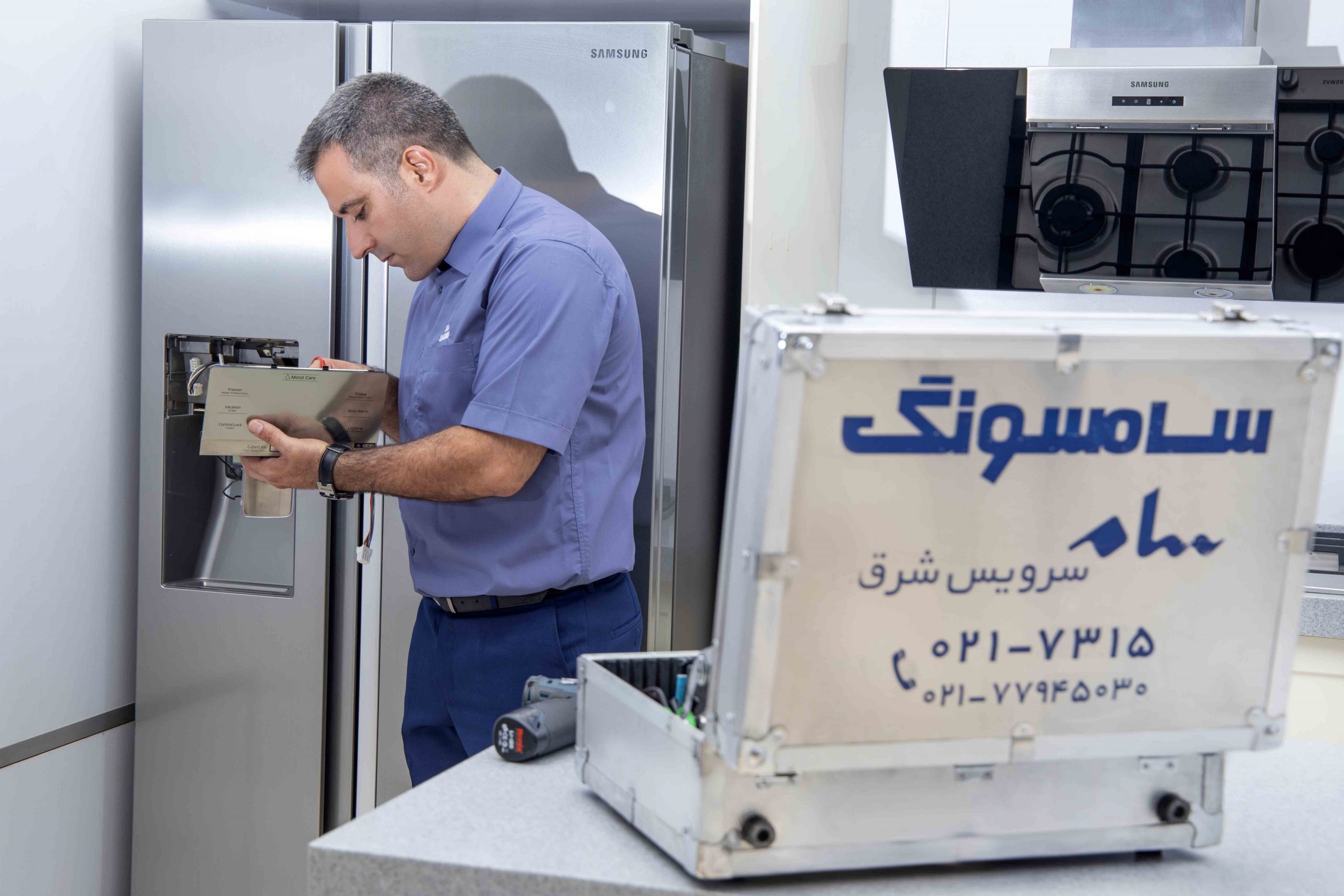 با توجه به شلوغی خیابان های تهران و مشغله های روزمره مردم، ما امکان تعمیر در منزل را به صورت 24 ساعته در اختیار شما عزیزان قرار داده ایم. شما می توانید در هر ساعت از شبانه روز با ما تماس بگیرید تا در کمتر از 2 ساعت، تکنسین و تعمیرکار سامسونگ به محل سکونتتان مراجعه کند و در همان جا تعمیرات را انجام دهد.